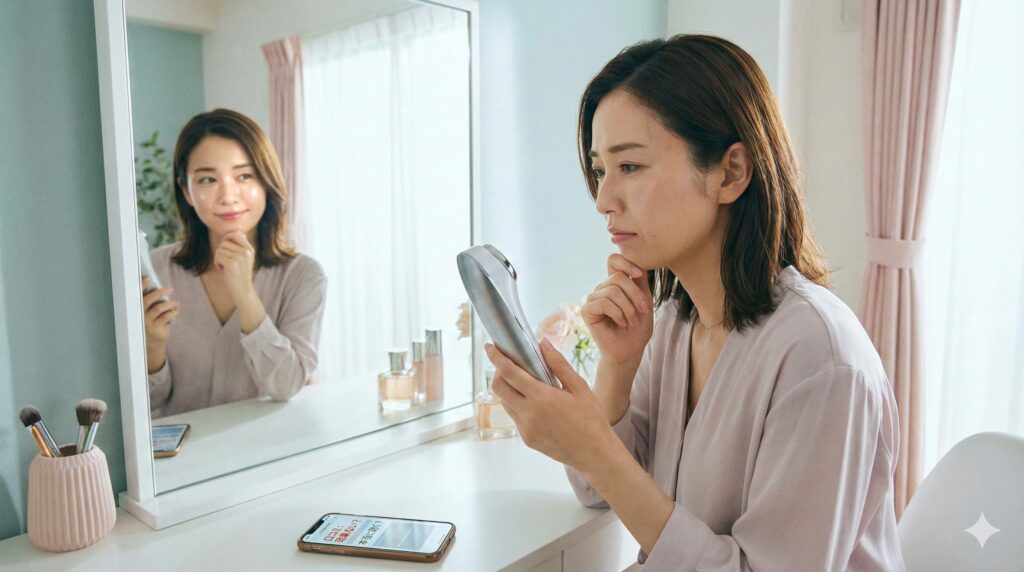 今回は、多くの人が抱える「美顔器への不信感」や、あえて目を背けたくなるデメリットにも優しく光を当てながら、「なぜ今、私たちに『手間いらず』が必要なのか」。そして、もう二度と自分を嫌いにならないための向き合い方を、元美容部員の視点で紐解いていきます。